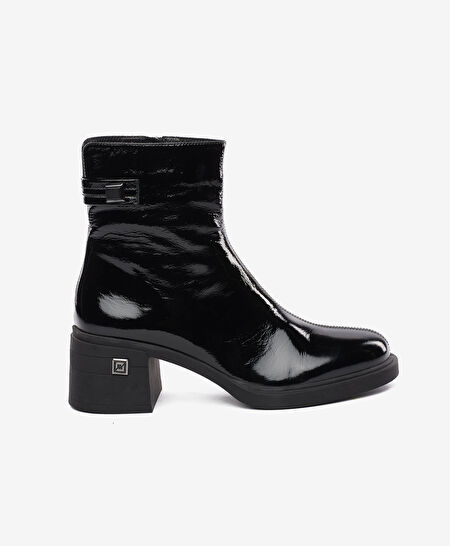 Kadın Siyah Rugan Hakiki Deri Topuklu Bot