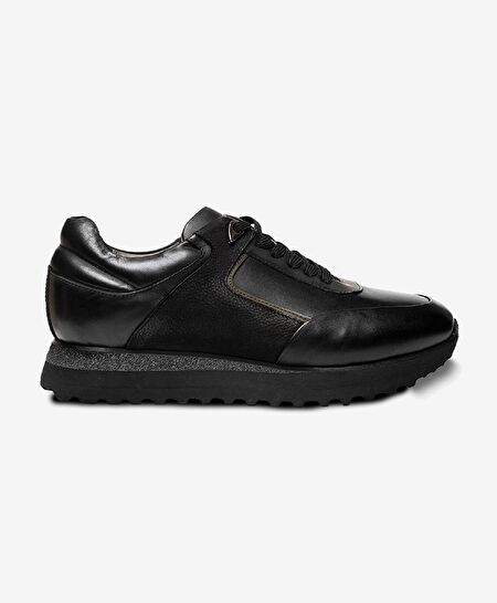 Erkek Siyah Hakiki Deri Sneaker Ayakkabı