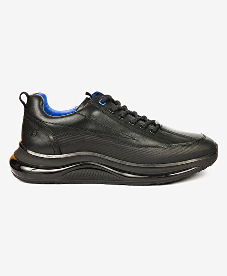 Erkek Siyah Mavi Hakiki Deri Spor Ayakkabı