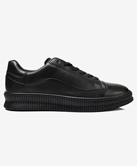 Erkek Siyah Hakiki Deri Sneaker Ayakkabı