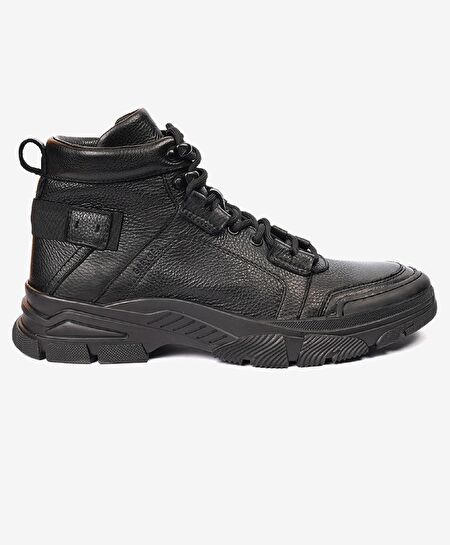 Erkek Siyah Hakiki Deri Sneaker Bot