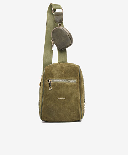 Kadın Haki Hakiki Deri Çapraz Çanta