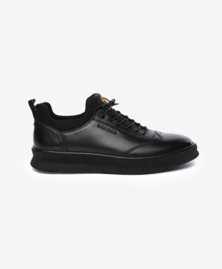 Erkek Siyah Hakiki Deri Sneaker Ayakkabı
