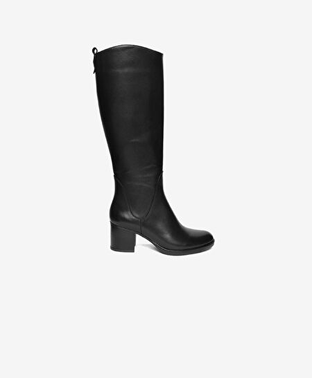 Kadın Siyah Hakiki Deri Ortaflex Taban Topuklu Çizme