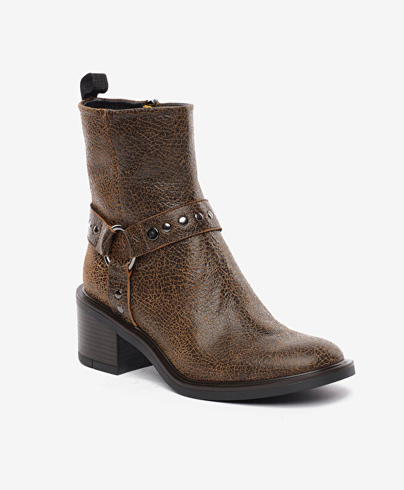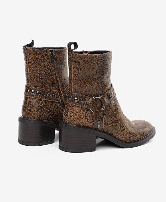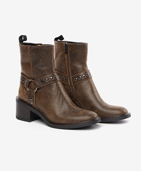 Kadın Kahverengi Hakiki Deri Topuklu Bot