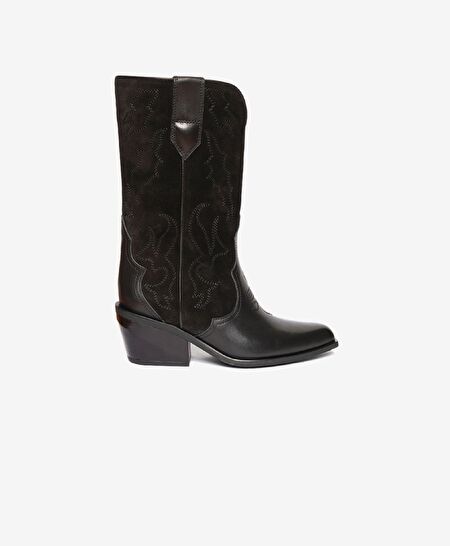Kadın Siyah Süet Hakiki Deri Topuklu Bot