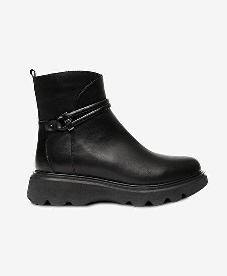 Kadın Siyah Hakiki Deri Termo Light Taban Military Bot
