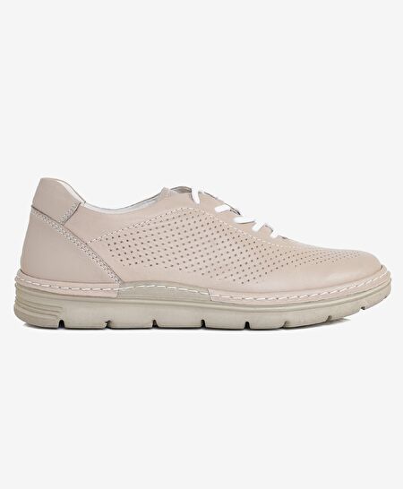 Kadın Bej Hakiki Deri Sneaker Ayakkabı