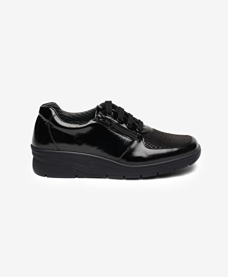 Kadın Siyah Rugan Hakiki Deri Comfort Ayakkabı