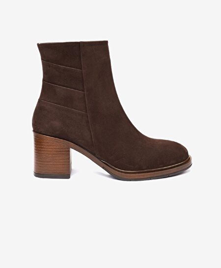 Kadın Kahve Nubuk Hakiki Deri Topuklu Bot