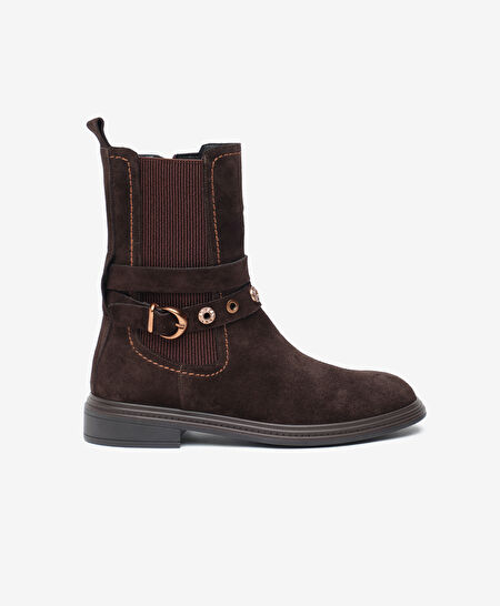 Kadın Kahverengi Hakiki Deri Topuklu Bot