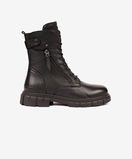 Kadın Siyah Hakiki Deri Memory Foam Taban Military Bot