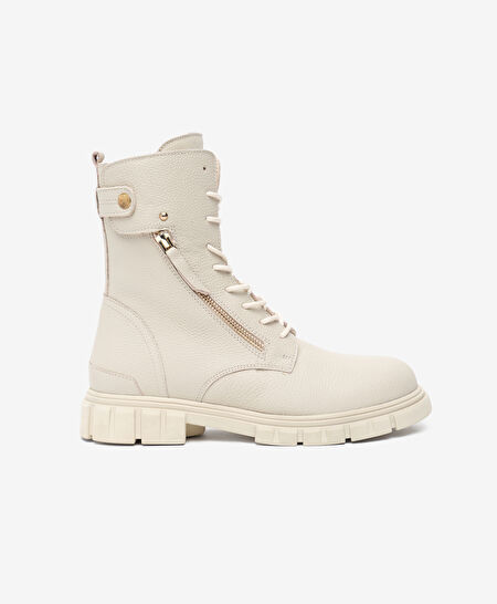 Kadın Ekru Hakiki Deri Termo Taban Military Bot