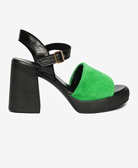 Kadın Siyah Yeşil Hakiki Deri Sandalet
