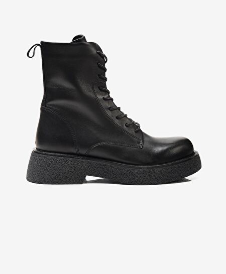 Kadın Koyu Bej Hakiki Deri Military Bot