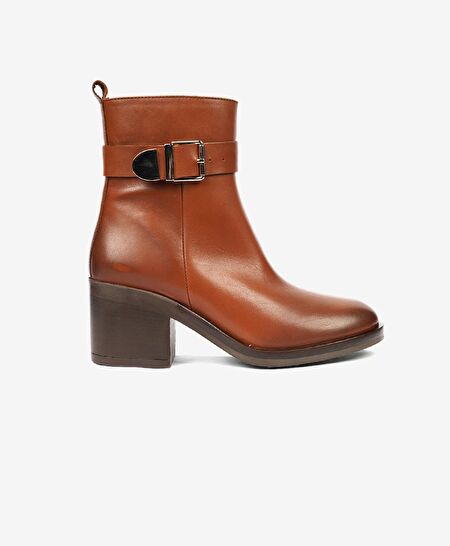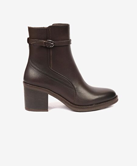 Kadın Kahverengi Hakiki Deri Topuklu Bot