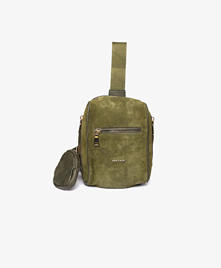 Kadın Haki Hakiki Deri Çapraz Çanta