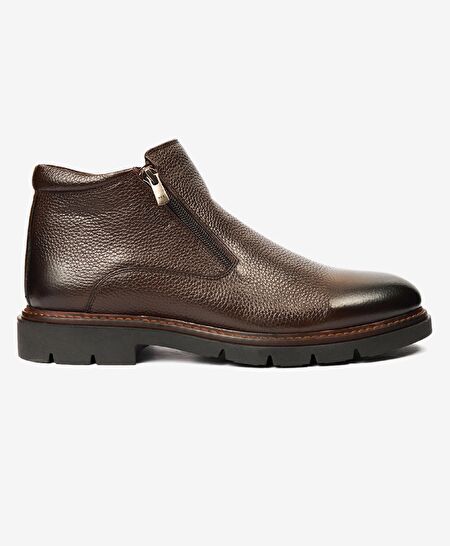 Erkek Kahverengi Hakiki Deri Termo Taban Klasik Bot