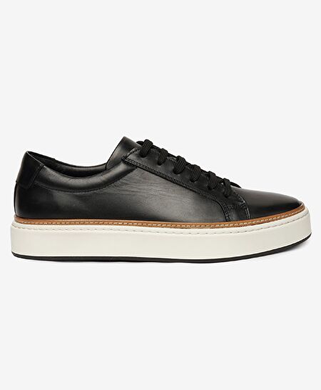 Erkek Siyah Hakiki Deri Sneaker Ayakkabı