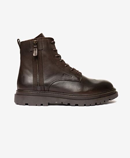 Erkek kahverengi Hakiki Deri Military Bot