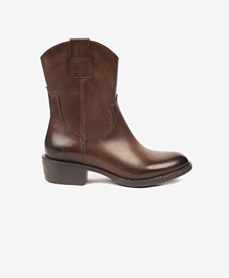 Kadın Kahverengi Hakiki Deri Topuklu Bot