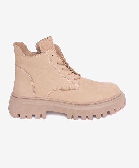 Kadın Koyu Bej Hakiki Deri Military Bot