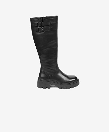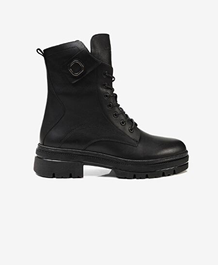Kadın Siyah Hakiki Deri Topuklu Bot