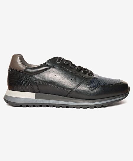 Erkek Siyah Hakiki Deri Sneaker Ayakkabı