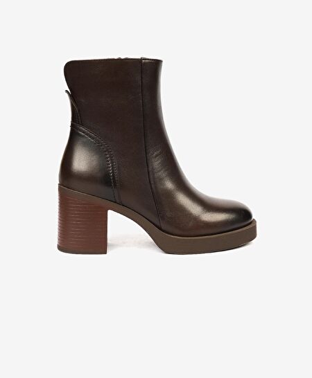 Kadın Kahverengi Hakiki Deri Topuklu Bot