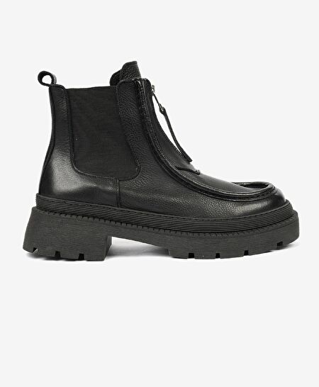 Kadın Siyah Hakiki Deri Termo Light Taban Chelsea Bot