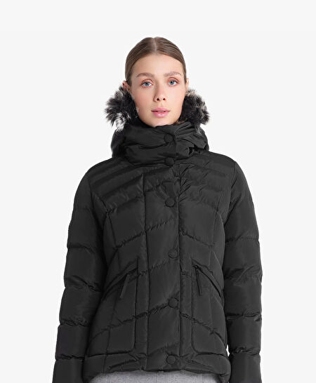 Kadın Siyah Kaz Tüyü Su İtici Mont 4K2TM84000