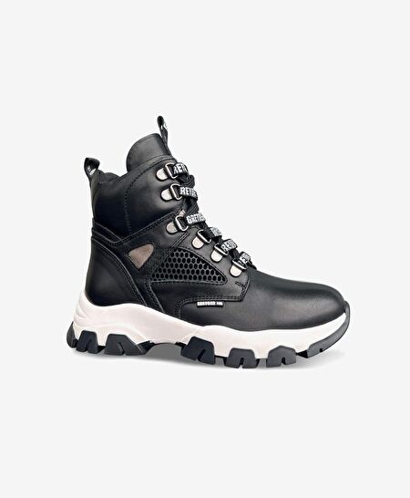 Kız Çocuk Siyah Beyaz Hakiki Deri Bot