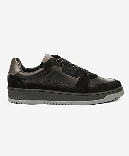 Erkek Siyah Hakiki Deri Sneaker Ayakkabı