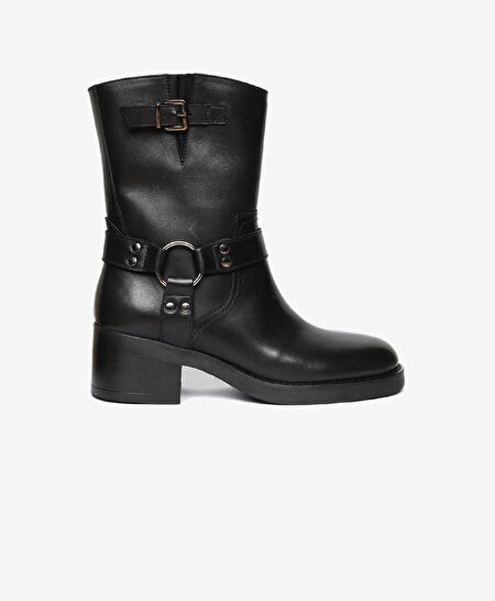 Kadın Siyah Hakiki Deri Topuklu Bot