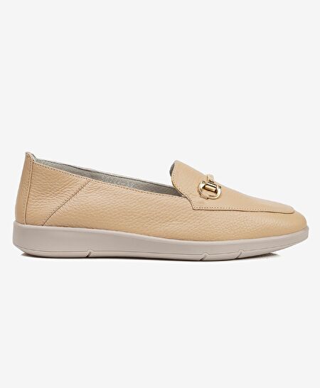 Kadın Bej Hakiki Deri Loafer Ayakkabı