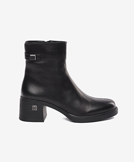 Kadın Siyah Hakiki Deri Topuklu Bot