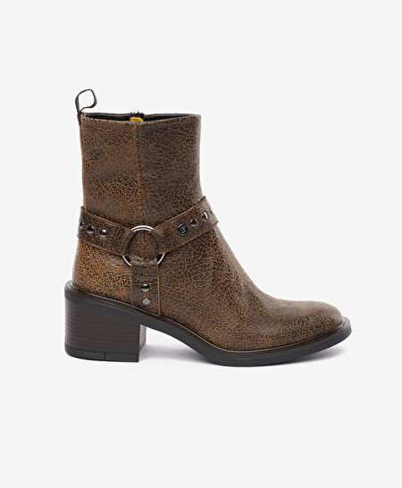 Kadın Kahverengi Hakiki Deri Topuklu Bot
